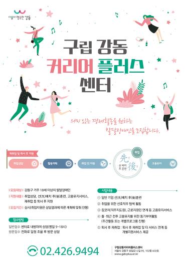 한편 강동커리어플러스센터의 취업지원 프로그램은 경제 활동을 희망하는 강동구 거주 만 18세 이상의 발달장애인(지적 및 자폐성)이면 누구나 지원가능하다.
