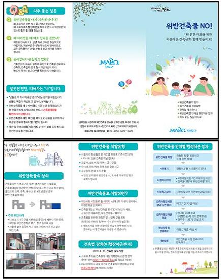 한편 구는 이번 현장 조사와 더불어 위반건축물 발생 예방을 위해 제작한 리플릿을 활용해 홍보활동도 함께 실시할 계획이다.