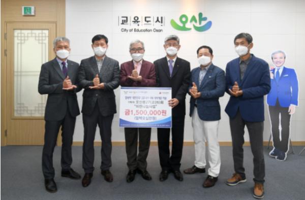 한편, 오산중27(고26)회는 매년 관내 학생들을 위해 200만원 상당의 장학금을 지원해왔으며, 사회적 나눔을 확산하고자 ‘이젠나눔’ 이라는 사업을 펼쳐 적극적으로 지역사회의 취약계층을 발굴하고, 이들에 대한 지원에 최선을 다할 계획이다.