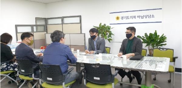 경기도의회 교육행정위원회 추민규(하남2) 의원은 경기도의회 하남상담소에서 경기문화재단 지역문화교육본부장과 하남시 예술문화인의 경기형 예술참여사업에 대해 논의했다고 14일 밝혔다.