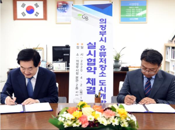 의정부시(시장 안병용)는 4월 2일 의정부시 유류저장소 도시개발사업의 사업시행자인 나리벡씨티개발(주)의 조재훈 대표와 성공적인 사업수행 및 목적사업인 미래직업체험관의 운영에 필요한 사항에 대해 합의하는 도시개발사업 실시협약을 체결했다.