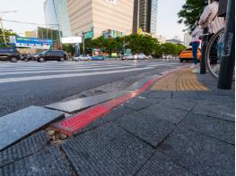 광진구(구청장 김선갑)가 횡단보도 이용 시 스마트폰 등을 사용하는 보행자의 안전을 위해 지역 내 횡단보도에 ‘LED 바닥 신호등’과 ‘보행신호 음성 안내기’를 설치했다.