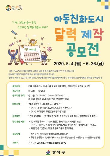 또한 달력 2,000부를 만들어 작품 선정자와 참가자, 학교, 공공기관 등에 배포해 아동친화도시 강서의 미래를 알린다.