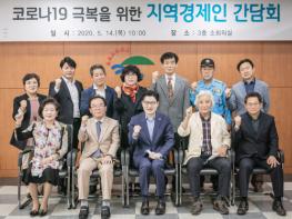 이정훈 강동구청장이 5월 14일(목) 오전10시 구청 3층 소회의실에서 열린 코로나19 극복 지역경제인 간담회에 참석했다. 이번 간담회는 관내 소상공인, 업종별 대표자들과 함께 코로나19로 인한 지역사회 경제인들의 애로사항과 건의사항을 청취하는 기회를 가지고자 마련됐다.