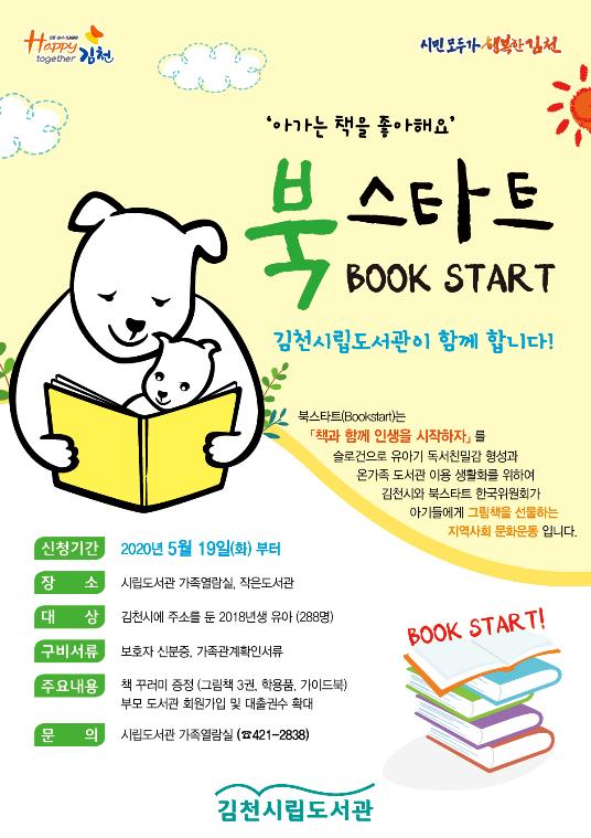 김천시에 주소를 둔 2018년생 유아 가정은 보호자 신분증과 주민등록등본(또는 건강보험증)을 지참하여 시립도서관이나 가까운 작은도서관에 신청하면 북스타트 꾸러미를 선착순으로 제공받을 수 있으며 부모의 도서대출 권수도 확대된다.