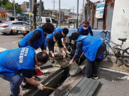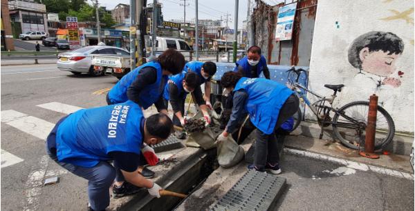 이들은 2개 조로 나뉘어 국도 6호선 수해 취약지 배수로 15여 개소와 빙그레 굴다리 입구부터 한신아파트 경사로 입구까지 있는 배수로 30여개소, 남양아파트 복개도로 주변 10개소 등 3km 내의 도로변에 있는 총 55여 개소의 측구 및 배수로를 점검하고, 쌓여 있는 슬러지, 낙엽, 쓰레기 등 총 1톤의 퇴적물을 삽과 괭이를 활용해 수거했다.