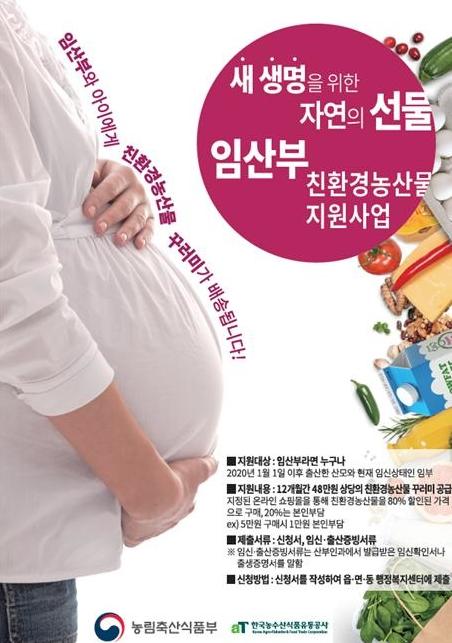 시는 지난 5월 1일부터 임산부 1,250명을 대상으로 신청접수를 받고 있으며, 1년간 최대 48만원(자부담 96,000원 포함) 상당의 친환경 농산물 꾸러미를 월 1~2회 공급할 계획이다.