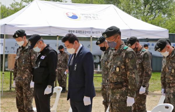 김상돈 시장은 “국난에 비유될 코로나19를 민·관·군이 협력하여 슬기롭게 극복해 나가고 있다”며, “애국의 한마음으로 마지막 한 분까지 조국의 품에 안길 수 있기를 간절히 소망한다”고 말하며 유해발굴사업의 성과를 기원했다.