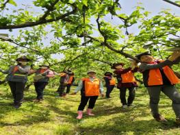 한솔동 주민자치회 위원 10여 명은 지난 14일 금남면 배 농가를 방문해 열매솎기와 봉지 씌우기 등 일손을 도왔다.
