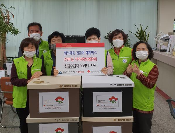 주안1동 지역사회보장협의체는 매분기 10세대 씩 선정해 4만원 상당 행복채움 집들이 행복 상자를 만들어 명예사회복지공무원과 동 지역사회보장협의체 위원들이 함께 동참해 지원했다.