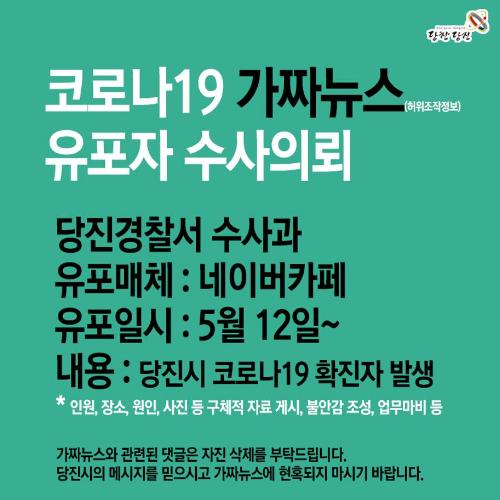 당진시에 따르면 지역 온라인 커뮤니티인 네이버 당진부동산카페에는 지난 12일 당진시 합덕읍에 이태원 방문으로 인한 코로나19 확진자 2명이 발생했다는 허위사실이 게시돼 보건소와 관련 부서에 사실 여부를 확인하기 위한 시민들의 전화가 폭주했다.