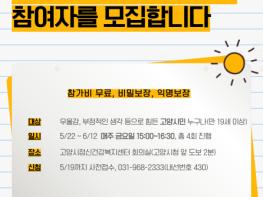 일상생활, 가족관계, 사회적 관계, 생활습관 등 다양한 문제로 우울 및 스트레스를 겪고 있는 만 19세 이상 고양시민이라면 누구나 참여 가능하며, 자세한 사항은 고양시정신건강복지센터(☎031-968-2333, 내선번호 403)로 문의하면 된다. 끝.