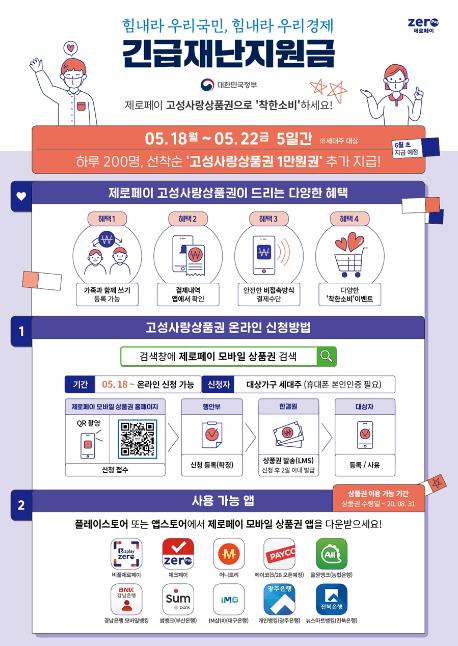 고성군 모바일형 고성사랑상품권 재난지원금은 ▲고성군청 홈페이지에서 연동 ▲제로페이 모바일 상품권 홈페이지 검색 ▲모바일(앱)결제앱(비플제로페이, 체크페이, 머니트리)을 활용해 신청 가능하다.