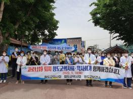 청도군(군수 이승율)은 코로나19 방역체계가 사회적 거리두기에서 생활속 거리두기로 전환됨에 따라 14일 청도역 광장에서 박용준 청도군의사회장과 이근우 청도군약사회장이 중심이 되어 코로나19퇴치 청정 청도 및 지역경제 살리기 홍보 캠페인을 실시하였다.