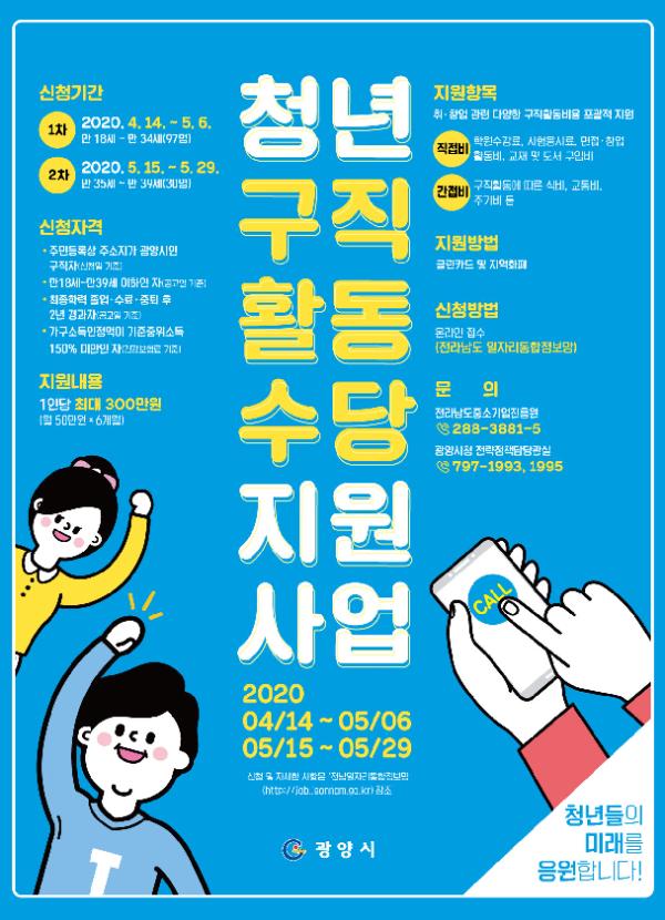광양시는 5월 15일부터 5월 29일까지 청년 구직활동수당 2차 대상자를 모집한다고 15일 밝혔다.