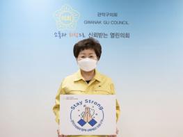 왕정순 관악구의회 의장이 15일, 코로나19 극복을 위한 ‘스테이 스트롱(Stay Strong)’릴레이 캠페인에 동참했다.