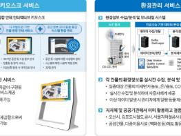 ①다양한 환경센서를 통해 실내미세먼지, 온습도, 유해가스누출, 흡연여부 등 환경상태를 확인할 수 있는 환경관리 서비스, ②민원인의 시설물 이용편익 증진을 위해 3차원 기반 건물 내 동선을 안내할 수 있는 키오스크 서비스, ③vr기술을 활용한 가상의 재난대응 교육 및 외국어 체험 서비스, ④시설물 운영관리에 첨단 ar서비스를 적용한 비대면 스마트한 정비환경 제공, ⑤드론의 빠른 기동성을 바탕으로 통합적인 보안/재난/안전관제서비스 제공, ⑥열화상카메라를 장착한 무인로봇을 활용한 전염병 예방 및 보안사각지대 점검, ⑦시설물의 전력사용량 분석을 통해 최적의 에너지 운용방안을 구축할 수 있는 서비스를 제공한다.