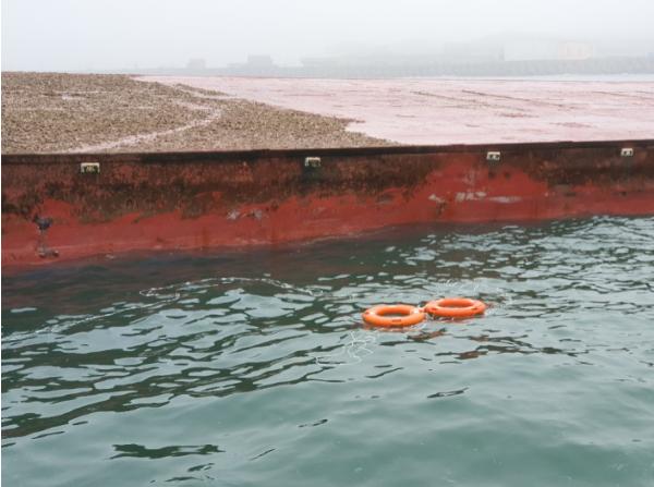 울산해경에 따르면 오전 04시 30분경 울산 온산 이진항앞 해상에 투묘중이던 해양바지선(745톤,부산선적, 길이62m,폭18m,사석운반선) 뒤집혀 있다며 인근을 항해하던 선장이 신고한 사항으로,