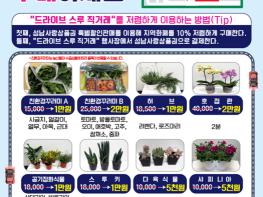 차에서 내리지 않고도 지역에서 재배·생산한 친환경 농산물 꾸러미(2종류)와 화훼세트(6종류)를 시중가보다 최대 50% 싸게 살 수 있다.