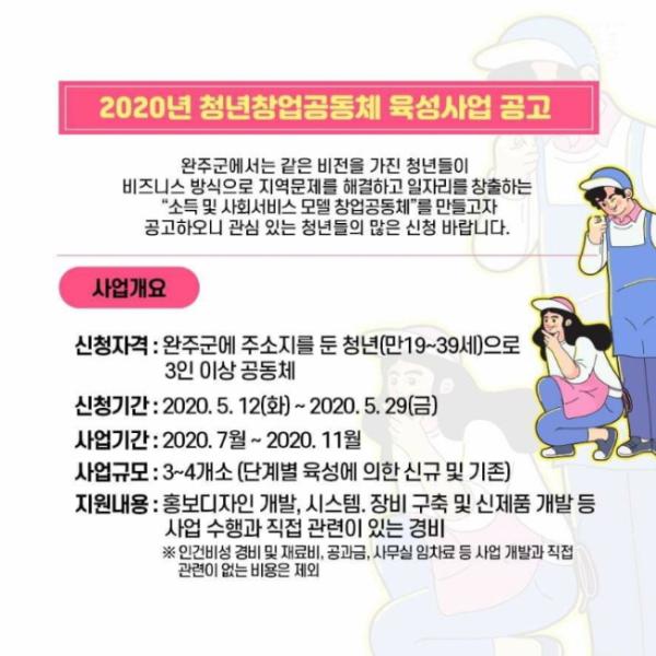 기타 자세한 사항은 완주군청 홈페이지 고시공고 및 완주군 사회적경제과 청년정책팀(290-3238)으로 문의하면 된다.