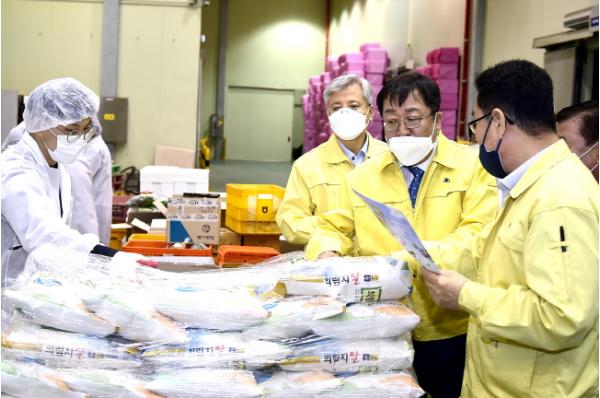 이날 이상천 시장은 농산물꾸러미 제작 현장을 둘러보고 신선하고 품질 좋은 식재료가 제공될 수 있도록 만반의 준비를 해달라고 주문했다.