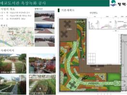 세교도서관 옥상녹화 사업은 도시 열섬화와 미관에 취약한 옥상테라스의 시멘트 패널을 제거하고 인공 경량토 위에 황금측백 외 5종 370주, 참나리 외 25종 5,048본 등 계절초화와 허브식물을 식재하고, 현무암 판석과 멧돌을 이용한 산책로 조성, 장독대, 조형물 등이 설치된다.