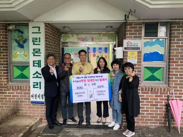 북구 농소3동 행정복지센터는 15일 쌍용아진 4차 아파트를 찾아 착한임대인 5호점 인증식을 가졌다. 해당 아파트는 아파트 내 그린몬테소리어린이집 임대료 3개월 치를 50% 인하하기로 결정했다.
