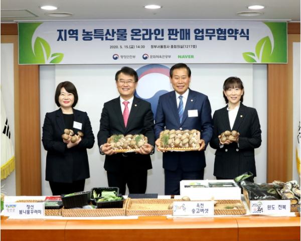 지난 15일 정부서울청사에는 김재종 옥천군수, 행정안전부 윤종인 차관, 문화체육관광부 최윤희 제2차관, 인터넷 쇼핑몰 관계자가 참가하여 지역 농특산물 온라인 판매 업무협약을 체결했다.