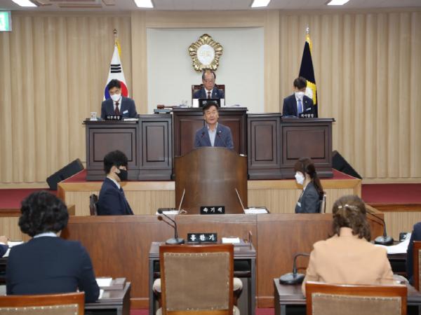 손태영 의장은 개회사에서 “코로나 19로 어려움을 겪고 있는 군민들의 기대에 부응하고 희망의 메시지를 전할 수 있는 알찬 임시회가 되기를 기대하며 5월은 본격적인 영농을 준비하는 매우 중요한 시기 이므로 집행기관에서는 준비에 차질이 없도록 만전을 기해 주기를 바란다.”고 말했다.