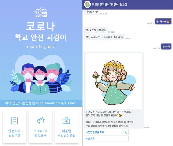 우 교사가 개발한 앱은 학교에서 코로나19와 관련해 유용하게 사용할 수 있는 ‘코로나 학교 지킴이’다.