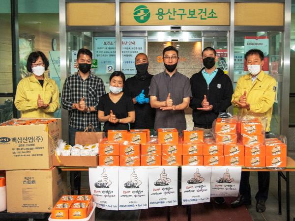 용산구 이태원동 소재 라이너스바베큐(대표 김 라이너스성), 플랜트 카페(대표 미파)가 18일 용산구(구청장 성장현)에 바베큐 도시락 150인분, 비건햄버거 및 쿠키 25인분을 기부했다.