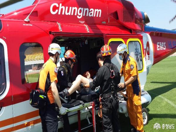 한편 충남소방헬기는 ‘구조·구급 및 화재 진압 전용헬기’로, 이탈리아산 AW139 기종이며, 자체 중량 3730㎏, 순항속도 250㎞, 최대 이륙중량은 6400㎏에 달하며 최대 14명까지 탑승이 가능하다.