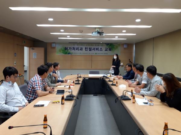 서비스마인드 강화 방안으로 시행된 서비스 교육에는 허가처리과 전 직원 26명이 참석해 친절서비스 교육을 받았다.
