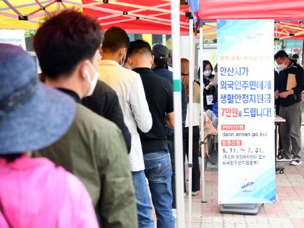 한편 안산시는 외국인 주민들의 신청 접수의 불편을 해소하기 위해 현장에 중국어, 영어, 러시아어, 베트남어 등 모두 11개 언어로 작성된 신청서를 마련하고 주소대신 외국인 등록번호로 신청하도록 조치하는 등 편리하게 신청할 수 있도록 돕고 있다.