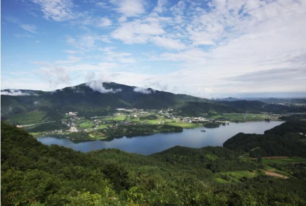 산자락에 안긴 호수를 바라보며 걷다보면 일상의 스트레스가 날아간다.