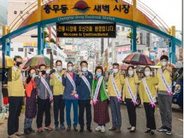부산 서구(구청장 공한수)는 코로나19 확산으로 침체된 전통시장 경기를 부활하기 위해 매월 넷째 주 수요일을 전통시장 방문의 날로 지정하여 관내 9개소 전통시장과 업무협약을 체결하고 충무동새벽시장에서 전통시장 이용 활성화 캠페인을 가졌다.