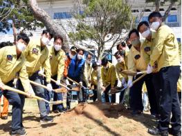 이철우 경북도지사는 5일 제75회 식목일을 맞아 도청 전정에서 노조 위원장 등 직원 20명과 함께 도민들의 안녕을 기원하고 코로나19 극복을 염원하는 희망 나무를 심었다.