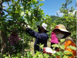 농촌인구의 도시유입과 농업인구의 고령화로 농촌인구가 지속적으로 감소하고 일할 수 있는 젊은 인구가 턱없이 부족한데다가 올해에는 코로나19로 인해서 인근지역의 일손까지 줄어들어 일손 부족이 더욱 가중된 상황이라 과수 농가에서는 다른 어느해보다 일손돕기가 더욱 절실한 시기이다.