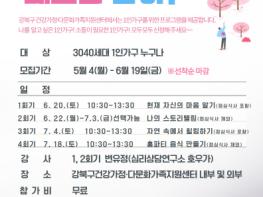 강북구에 주소지를 두고 있는 30~40대라면 누구나 신청 가능하다. 6월 19일(금)까지 센터 홈페이지에서 하거나 전화(☎02-987-2567)로 접수할 수 있다. 모집인원은 선착순 10명이며 참가비는 무료다.