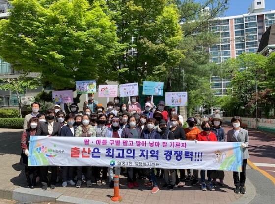 이날 캠페인은 ‘지역사회 경쟁력은 출산!’이라는 슬로건을 바탕으로 출산율 제고에 대한 지역 주민의 이해와 사회적 공감대 확산을 높이기 위해 실시하였으며 통장 및 동 직원 40여 명이 참여했다.