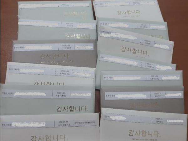 센터는 이에 따라 전주시민 가족들이 지난 18일까지 보내온 응모 사례 중 15건을 선별해 정성이 담긴 선물과 편지를 부부의 날인 5월 21일에 편지대상자들에게 배달했다.
