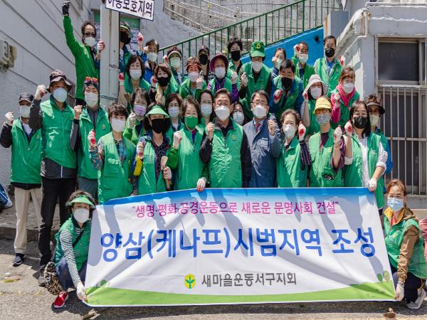 새마을운동서구지회(지회장 이명호)는 지난 20일 지구온난화 위기 극복을 위한 생명살림 국민운동의 일환으로 부산 서구 13개 동 새마을지도자 50여 명이 참여해 남부민 공영주차장 가로화단 및 아미초등학교 일원 2개소에 케나프 씨앗 100주 분량을 파종하여 양삼(케나프) 시범지역을 조성했다.