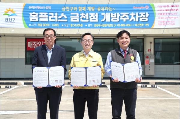 금천구(구청장 유성훈)가 5월 21일(목) 홈플러스 금천점 6층 옥상주차장에서 ‘홈플러스 금천점’, ‘금천구시설관리공단’과 부설주차장 개방 및 공유를 위한 3자간 업무협약을 체결했다고 밝혔다.
