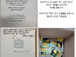 이 우편물에는 서툰 한국 글씨로 “대한민국 의료진 덕분에 이겨내고 있습니다. 필리핀 국민의 건강을 위해 힘써주신 여러분의 노고에 감사드립니다”라고 또박또박 적힌 편지가 동봉되어 있었다.
