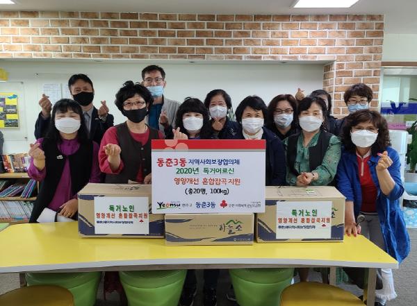 동춘3동 지역사회보장협의체(위원장 황옥순)는 관내 독거어르신의 건강한 식생활을 위해 지난 20일 독거어르신 20세대에 혼합 잡곡을 전달했다.