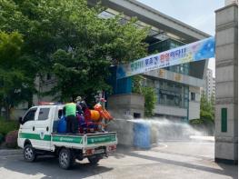 구리시(시장 안승남)는 관내 학교 개학을 앞두고 지역자율방재단(단장 정용득)과 함께 코로나19 확산 예방을 위한 소독 방역에 총력을 기울이고 있다.