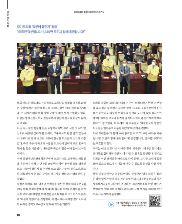 문경희 간행물편찬위원장(더불어민주당, 남양주2)은 “이번에 도입한 큰 글씨체 코너를 통해 눈이 불편한 어르신들이 좀 더 경기도의회 소식을 쉽게 접하는데 도움이 될 것”이라며 “앞으로도 의회 소식지가 도민에게 더욱 편하고 친숙하게 다가갈 수 있도록 노력할 것”이라고 말했다.