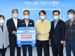 한편, 대구시버스운송사업조합은 코로나19로 인해 어려움에 처한 지역사회의 고통분담 차원에서 이번 성금 기부와는 별도로 각 버스업체의 자구 노력을 통해 운송비용 일부(14억7천만원 정도)를 자부담하기로 했다.