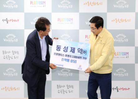 이동진 도봉구청장은 “연이은 동성제약의 후원에 감사드리며, 이번 후원품이 지역 어르신들의 건강을 위해 큰 도움이 되리라 생각한다.”며 “구에서도 어르신들의 건강과 코로나19 확산 방지에 힘써 나가겠다.”고 말했다.
