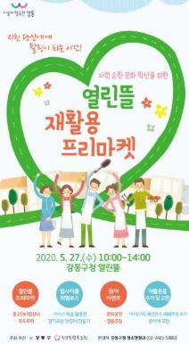 ‘열린뜰 재활용 프리마켓’은 자원 재사용과 나눔의 즐거움을 이웃과 함께 공유할 수 있는 소통의 장으로, 5월 27일 개장을 시작으로 10월까지(8월 제외) 매월 넷째 주 수요일 오전 10시에서 오후 2시까지 강동구청 앞 열린뜰에서 만날 수 있다.